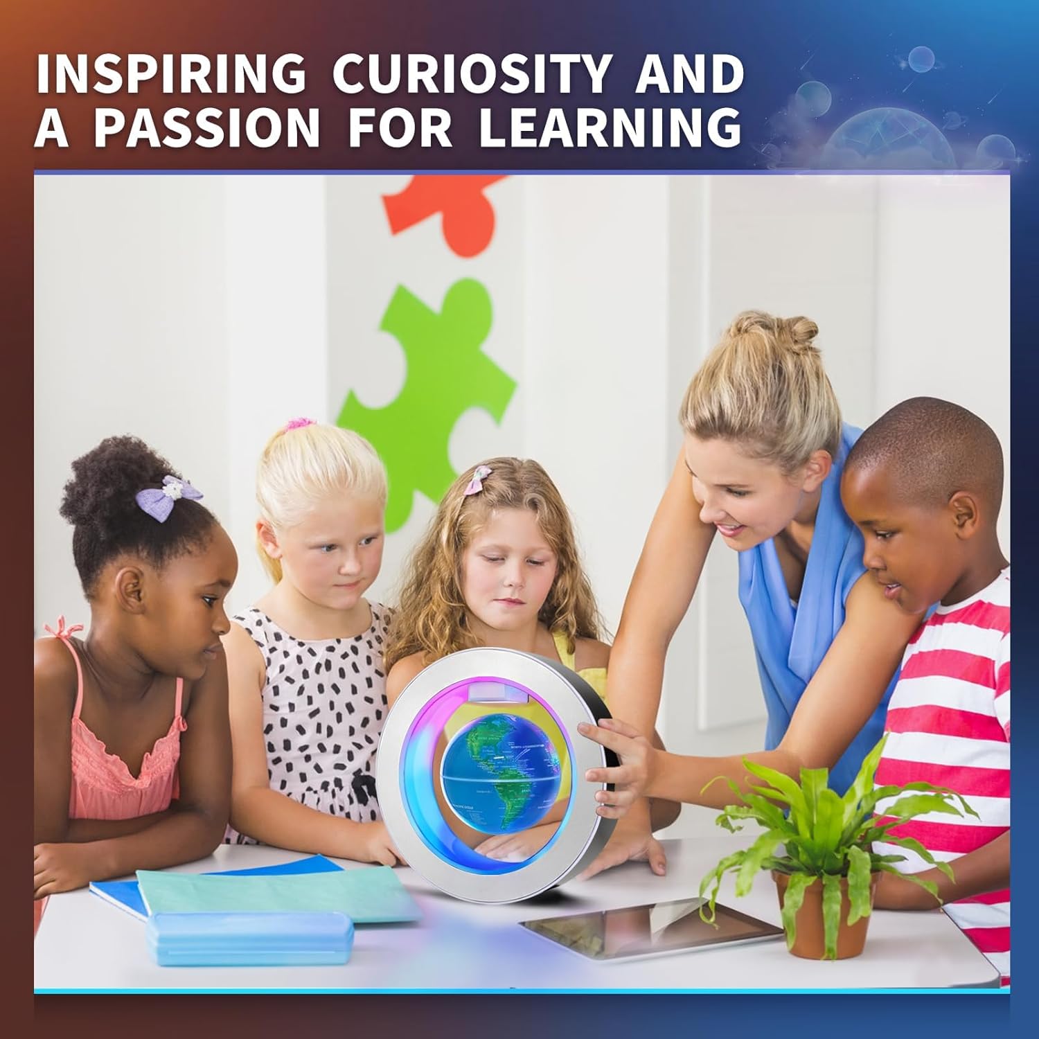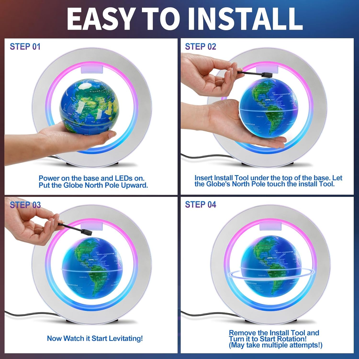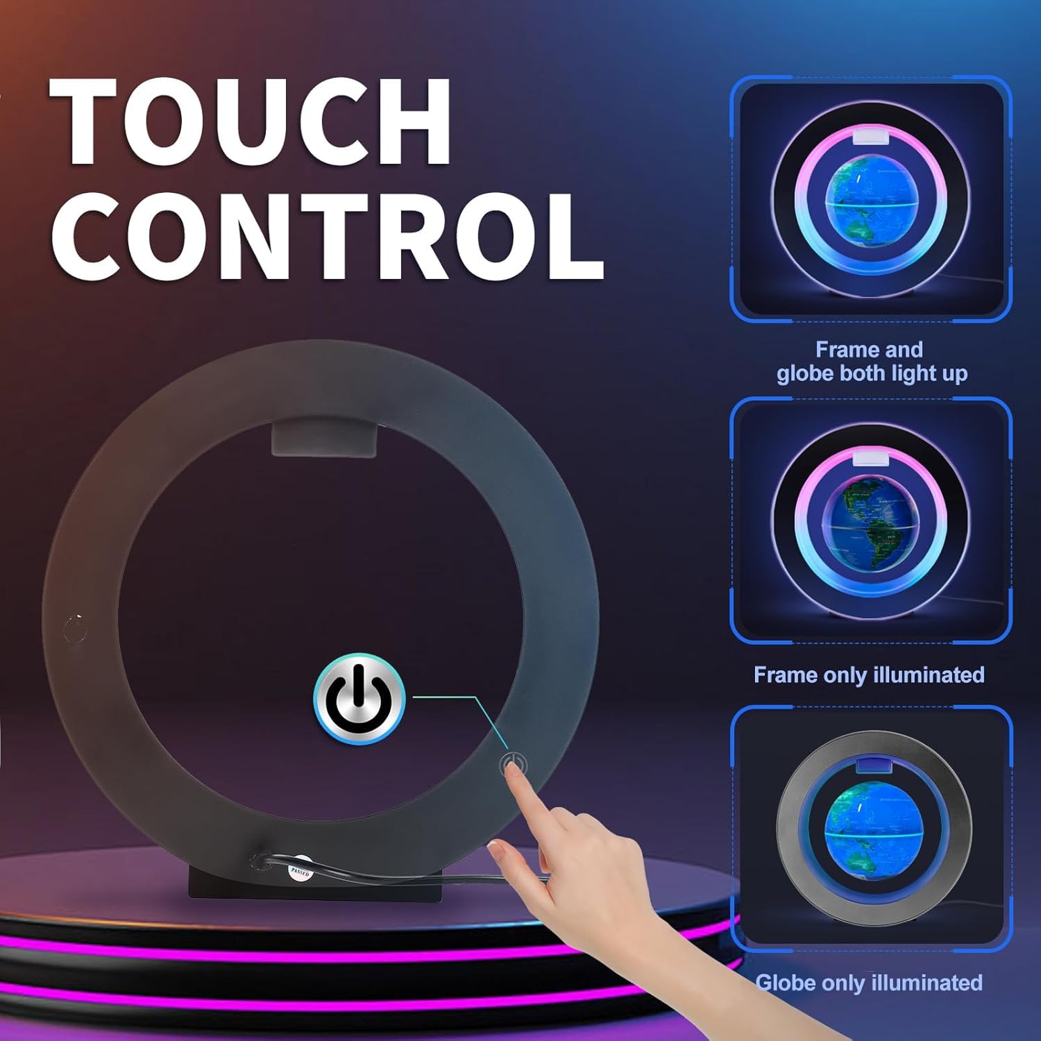 ๐ MAGNETIC LEVITATION GLOBE: This Magnetic Levitation Floating Globe is a fascinating high-tech decorative piece. It floats in mid-air using magnetism at the bottom and top of the frame, enhanced with premium silver accents. ๐ COLOR CHANGING LED LIGHTS: Enjoy multi-colored LED lights that automatically cycle through different hues. The globe's changing lights create a mesmerizing effect, especially in dim environments, adding a dynamic and captivating atmosphere. ๐ต TOUCH SWITCH: Equipped with a touch switch, this magnetic levitation globe allows separate control of the frame and sphere lights. Use it as a night light or as an eye-catching display in various settings such as desks, bookshelves, or classrooms. ๐ง EASY INSTALLATION: Installation is straightforwardโsecure the sphere to the top of the base, use the included tool to set it in place, and then remove the tool to watch the globe float effortlessly. It's a quick journey through time. ๐ COOL TECH GIFT: Whether for decor enthusiasts or as a gift for anyone seeking a unique and visually striking item, this magnetic levitation globe is an ideal choice. It's perfect for adding a touch of wonder to any space.